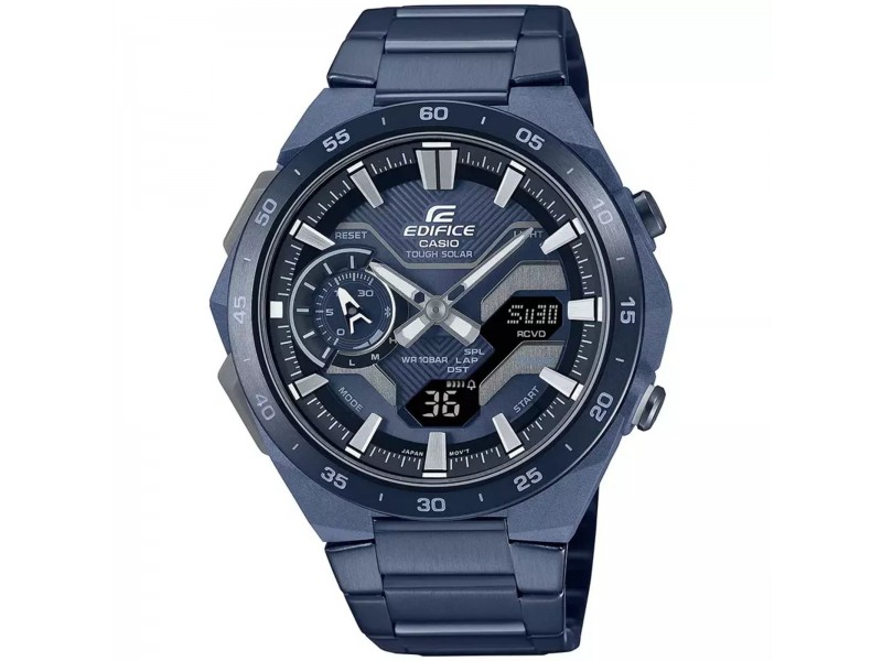 Casio ECB-2200CB-2AEF Edifice karóra: elegáns analóg-digitális dizájn, fényenergiás szerkezet, kék nemesacél csat. Kiemelkedő funkcionalitás: Bluetooth, LED világítás és világidő. Tökéletes választás aktív életmódhoz.