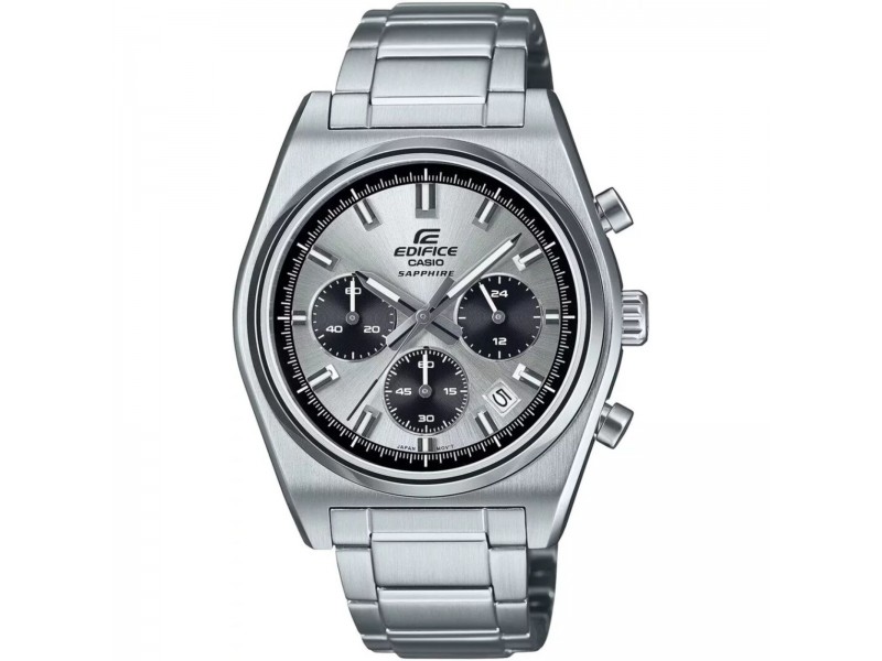 Casio Edifice EFB-730D-7AVUEF: Prémium férfi analóg karóra, nemesacél tokozással és vízálló kivitelben. Elegáns ezüst színű számlap zafír kristályüveggel, naptár és stopper funkcióval. Tökéletes választás a stílusos megjelenésért.