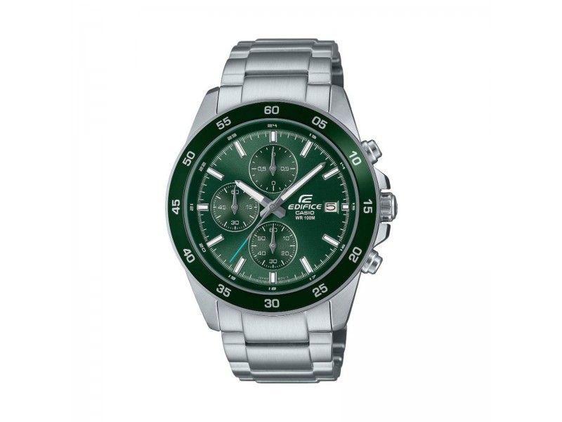 Casio Edifice EFR-526D-3AVUEF: Stílusos férfi analóg karóra nemesacél tokkal és szíjjal. Zöld számlap, kristályüveg és stopper funkció. Fokozott vízállóság, elegáns megjelenés és megbízható teljesítmény minden alkalomra.