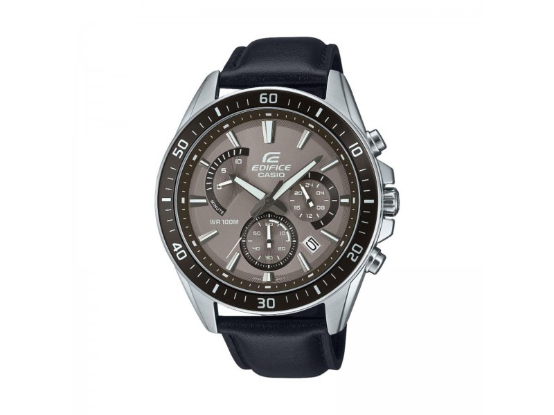 Casio EFR-552L-5AVUEF: Elegáns férfi analóg karóra ezüst nemesacél tokkal és fekete bőrszíjjal. Fokozott vízállóság és stopper funkció teszi tökéletessé mindennapi viselésre.
