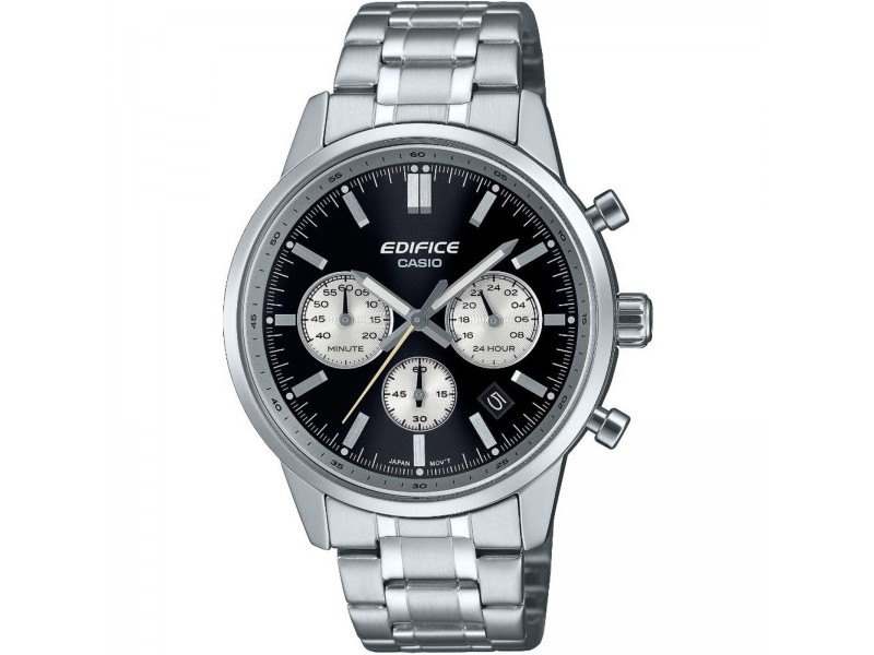 Casio EFR-575D-1AEF Edifice: Elegáns férfi analóg karóra nemesacél tokkal és szíjjal. Fekete számlap, kristályüveg és stopper funkció teszi tökéletessé a stílusos mindennapokhoz. Fokozottan vízálló kialakítás, ideális úszáshoz is.