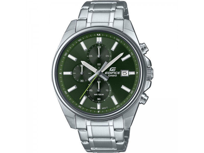 Casio Edifice EFV-610D-3CVUEF: elegáns férfi karóra nemesacél tokban, zöld analóg számlappal és stopper funkcióval. Tökéletes választás mindennapi stílushoz, fokozott vízállósággal és naptár funkcióval.