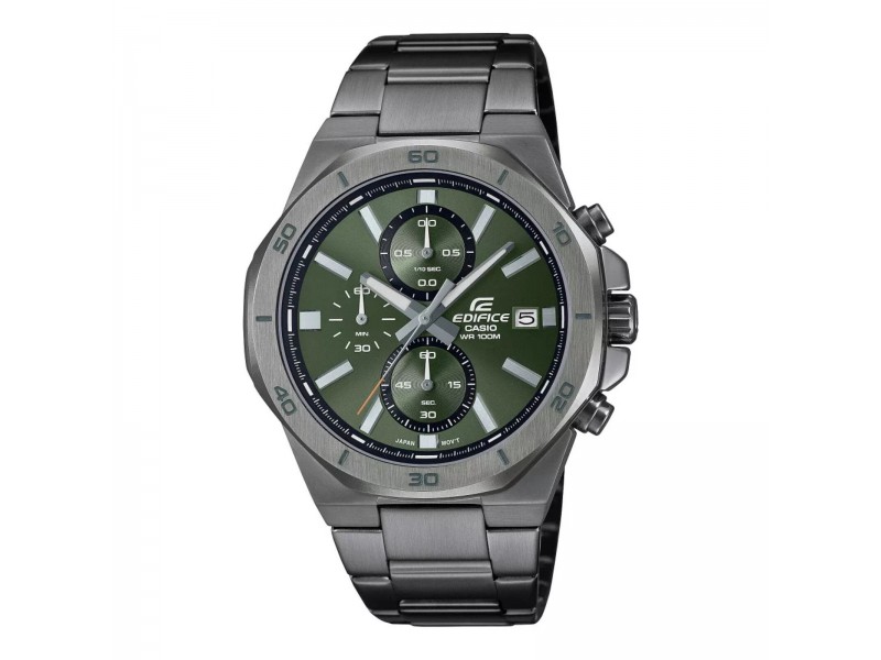 Casio Edifice EFV-640DC-3AVUEF: Elegáns férfi karóra nemesacél tokkal és szíjjal, zöld számlappal. Kristályüvege és fokozott vízállósága tökéletes társ a mindennapokban. Fedezd fel a stílusos időmérő élményét!