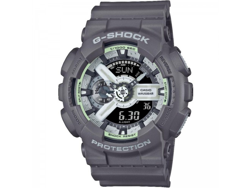 Casio GA-110HD-8AER: Stílus és funkcionalitás egyben! Masszív, szürke tok, kombinált analóg-digitális számlap és extrém vízállóság. Ideális választás aktív életmódhoz, LED világítással és világidő funkcióval.