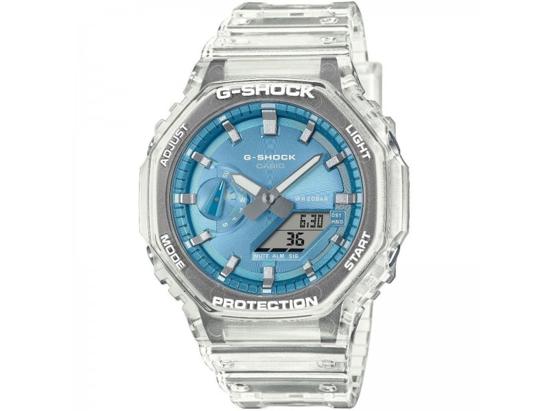 Casio GA-2100BM-7A2ER G-Shock: stílusos és strapabíró férfi karóra, amely a kék számlapjával és extrém vízállóságával ideális választás mindennapi kalandokhoz. Analóg-digitális kijelzője, LED világítása és többfunkciós jellemzői garantálják a precizitást és a modern megjelenést.