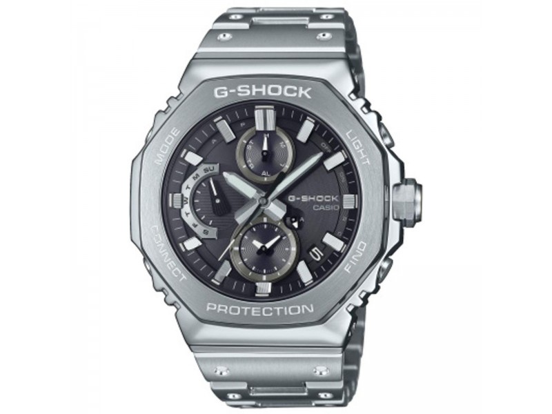 Casio GMC-B2100D-1AER: Stílusos férfi analóg karóra fényenergiával működő szerkezettel és extrém vízállósággal. Elegáns nemesacél tok és szíj, Bluetooth funkcióval és LED világítással a modern életvitelhez.