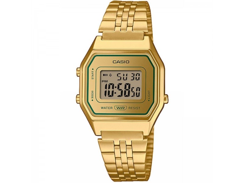 Casio LA680WEGV-9AEF Vintage férfi digitális karóra: Elegáns arany szín, nemesacél csat és digitális kijelző. Stílusos nyolcszögletű tokozás cseppálló védelemmel. Tökéletes választás a klasszikus megjelenés és modern funkciók kedvelőinek.