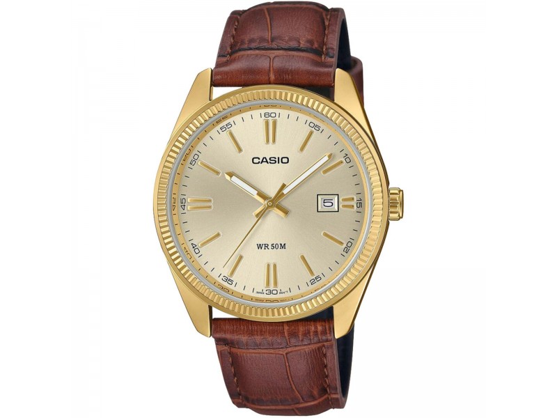 Elegáns, aranyszínű Casio férfi karóra bőrszíjjal: stílus és funkcionalitás tökéletes harmóniája. Kristályüveg, analóg kijelző és alapszintű vízállóság biztosítják az időtlen megjelenést és megbízhatóságot.