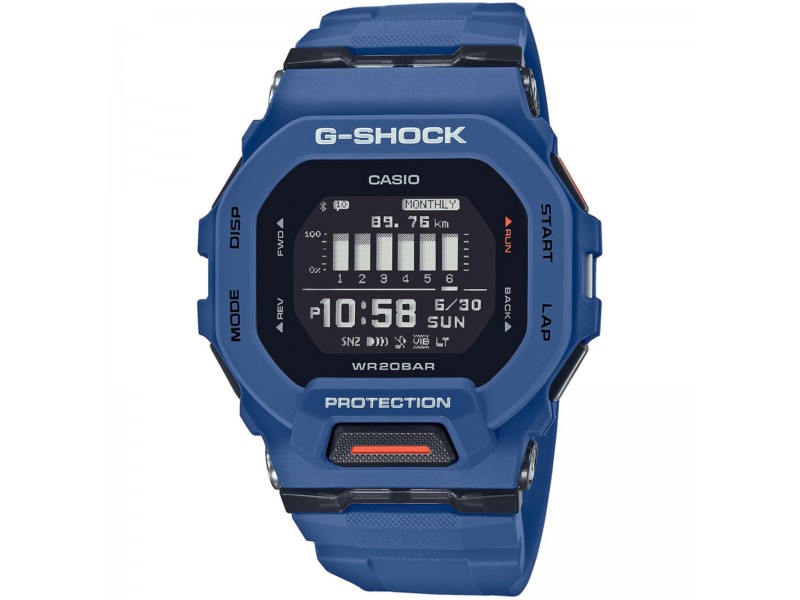 Casio GBD-200-2ER: Páratlan stílus és funkcionalitás egy karórában. A kék, szögletes tok és a digitális kijelző sportos megjelenést biztosít, míg a 20 bar vízállóság és a megbízható kvarc szerkezet minden kalandban társad lesz.