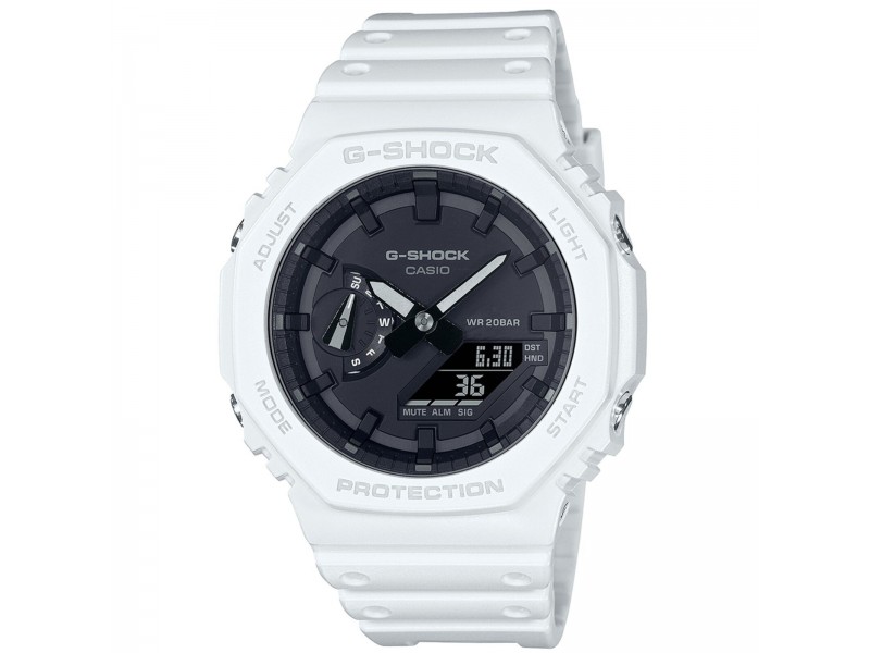Casio GA-2100-7AER: Stílusos G-Shock férfi karóra, amely ötvözi a fehér műanyag eleganciáját és a 20 bar vízállóságot. Ideális választás azoknak, akik megbízható és divatos időmérőt keresnek.