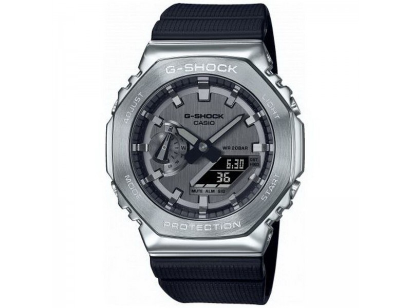 Casio GM-2100-1AER: A G-Shock sorozat stílusos és strapabíró férfi karórája. Fekete műanyag tok, 20 bar vízállóság és kombinált kijelző a modern funkcionalitásért. Tökéletes választás aktív életmódhoz.