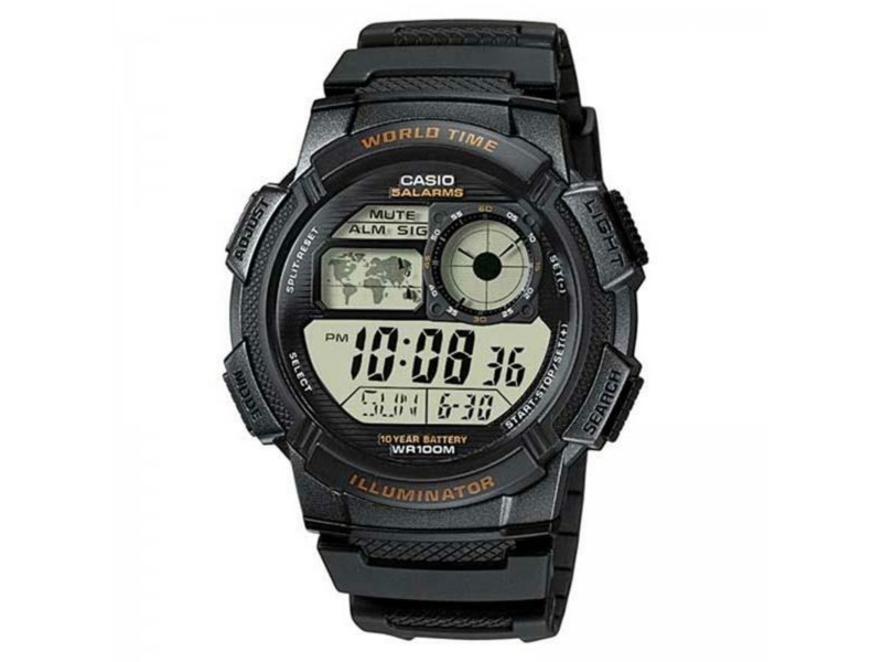 Casio AE-1000W-1AVEF: Stílusos, férfias digitális karóra, amelyet a fekete műanyag tok és szíj tesz különlegessé. Fokozott vízállóságával, LED világításával és világidő funkciójával ideális választás aktív életmódhoz.