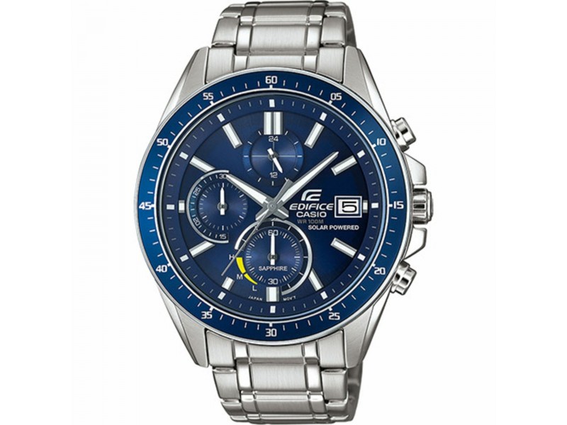 Casio EFS-S510D-2AVUEF: Elegáns férfi karóra, amely fényenergiával működik és zafír kristályüveggel védett. Rozsdamentes acél tok és szíj, kék számlap, fokozott vízállóság. Ideális választás a stílusos megjelenésért és a mindennapi funkcionalitásért.
