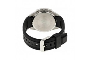 Casio EFV-550P-1AVUEF: Elegáns férfi karóra nemesacél tokkal és fekete műanyagszíjjal. Kristályüveggel és 47 mm-es átmérővel fokozott vízállóságot kínál úszáshoz, stopperrel és naptárral felszerelve.