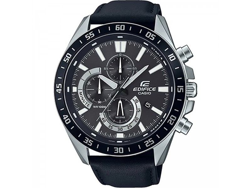 Elegáns és sportos Casio Edifice karóra férfiaknak, bőrszíjjal és nemesacél tokkal. Fekete számlapja kristályüveggel védett, úszásra is alkalmas vízállóságot biztosít. Ideális választás a stílus és funkcionalitás szerelmeseinek.