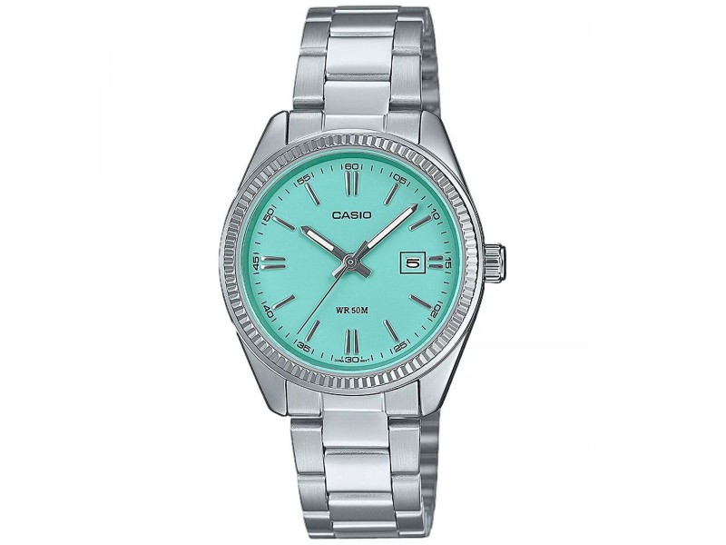 Elegáns és időtálló: Casio LTP-1302PD-2A2VEF női karóra, kék analóg számlappal és nemesacél szíjjal. Alapszintű vízállósága biztosítja a mindennapi használatot, míg a naptár funkció praktikus kiegészítője.