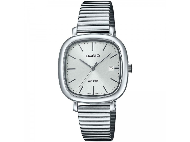 Elegáns Casio női karóra, nemesacél tokkal és szíjjal. Ezüst analóg számlapja kristályüveggel védett. Ideális választás azoknak, akik stílusos és alapszinten vízálló időmérőt keresnek.