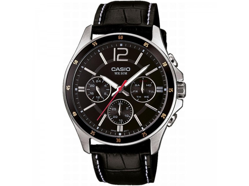 Casio MTP-1374PL-1AVEF férfi karóra – elegáns nemesacél tok, stílusos fekete bőrszíj és analóg számlap. Ideális választás, ha prémium megjelenést keresel és fontos számodra a naptár funkció.