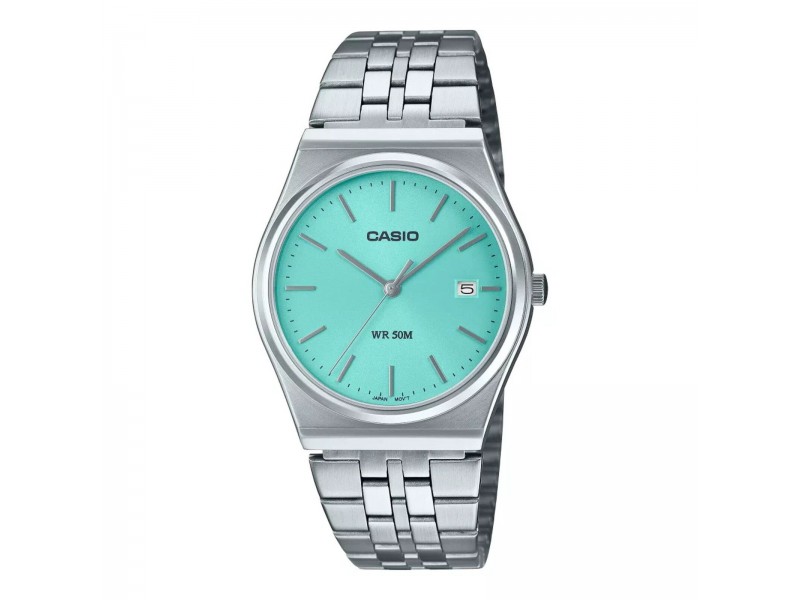 Casio MTP-B145D-2A1VEF férfi karóra: elegáns nemesacél tok és szíj, zöld analóg számlappal. Elemes szerkezet, alapszintű vízállóság és naptár funkció. Tökéletes választás stílusos megjelenéshez.
