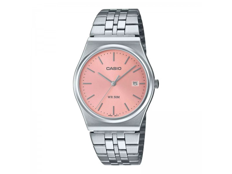 Elegáns Casio MTP-B145D-4AVEF férfi karóra, nemesacél tokkal és rózsaszín analóg számlappal. Kristályüvege és alapszintű vízállósága tökéletes társ a mindennapokban.