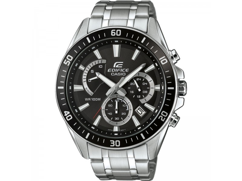 Casio EFR-552D-1AVUEF karóra: elegáns nemesacél tok és szíj, fekete analóg számlap, kristályüveg védelem. Tökéletes választás úszáshoz is, köszönhetően a fokozott vízállóságnak. Naptár és stopper funkciók a mindennapi praktikusságért.