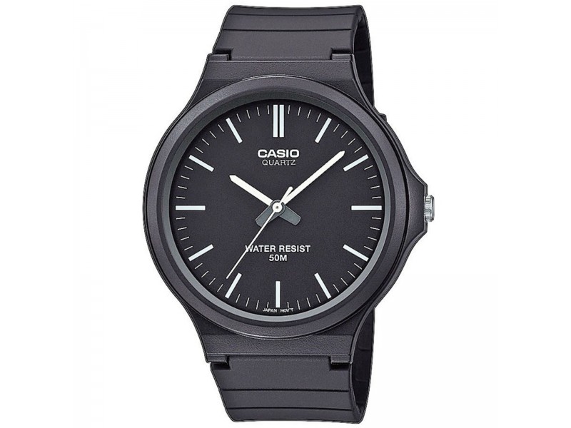 Casio MW-240-1EVEF: Stílusos és megbízható választás a mindennapokra. Fekete műanyag tok, 44 mm-es átmérő, és 5 bar vízállóság jellemzi. Az analóg kijelző és a kvarc szerkezet biztosítja a pontos időmérést.