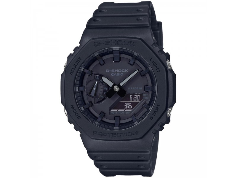 Casio GA-2100-1A1ER: A stílusos G-Shock férfi karóra, amely kombinált kijelzőjével és 20 bar vízállóságával tökéletes társ minden kalandhoz. Fekete szilikon szíjával és masszív kialakításával kitűnik a tömegből.