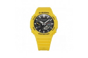 Casio GA-B2100C-9AER: Az ikonikus G-Shock karóra modern sárga szilikon dizájnnal, amely 20 bar vízállóságával és kombinált kijelzőjével egyaránt stílusos és praktikus választás aktív férfiak számára.