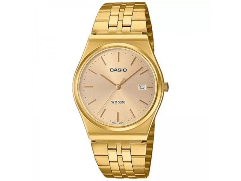 Elegáns arany Casio férfi karóra, nemesacélból. Kvarc szerkezet és 5 bar vízállóság biztosítja a megbízhatóságot és tartósságot. Tökéletes választás mindennapi viselethez vagy különleges alkalmakra.