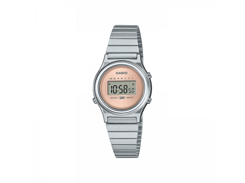 Casio LA700WE-4AEF: Elegáns női digitális karóra vintage stílusban. Ezüst nemesacél csat, rózsaszín számlappal és cseppálló kivitelben. Naptár, stopper és ébresztő funkcióval kiegészítve. Tökéletes választás a klasszikus elegancia kedvelőinek.