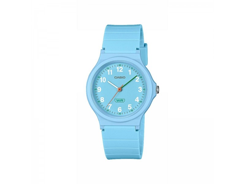 Elegáns és modern Casio LQ-24B-2BEF női karóra kék dizájnnal. Az analóg számlap arab számokkal és cseppálló tokozással biztosítja a stílusos megjelenést és a mindennapi használat kényelmét.