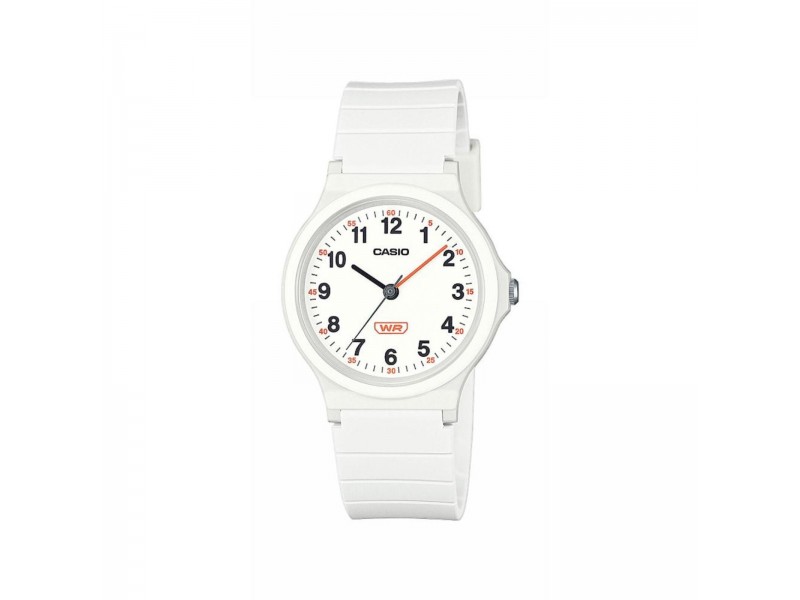 Elegáns Casio LQ-24B-7BEF női analóg karóra, fehér műanyag tokkal és szíjjal. Arab számokkal díszített számlapja és cseppálló kialakítása tökéletesen ötvözi a stílust és a funkcionalitást.