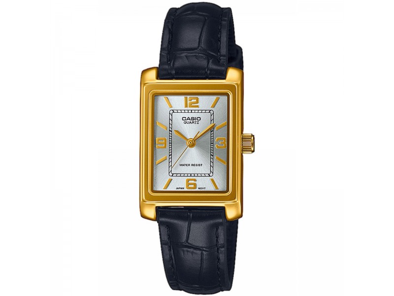 Elegancia és stílus a csuklón: a Casio LTP-1234PGL-7A2EF női analóg karóra arany fém tokkal és fekete bőrszíjjal. Cseppálló kialakításával és kristályüvegével tökéletes kiegészítője minden alkalomnak.